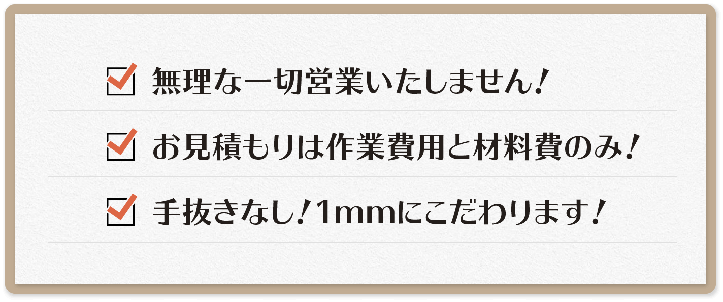 万が一、当社施工の不備が起きた場合には無償にて再施工をお約束いたします。