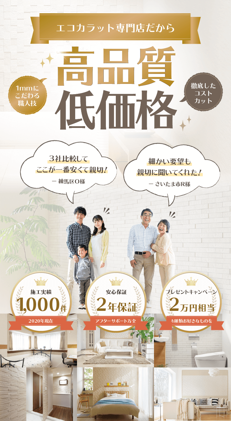 工事後、最長2年間の施工保証工事後、2年間の保証をお約束します!