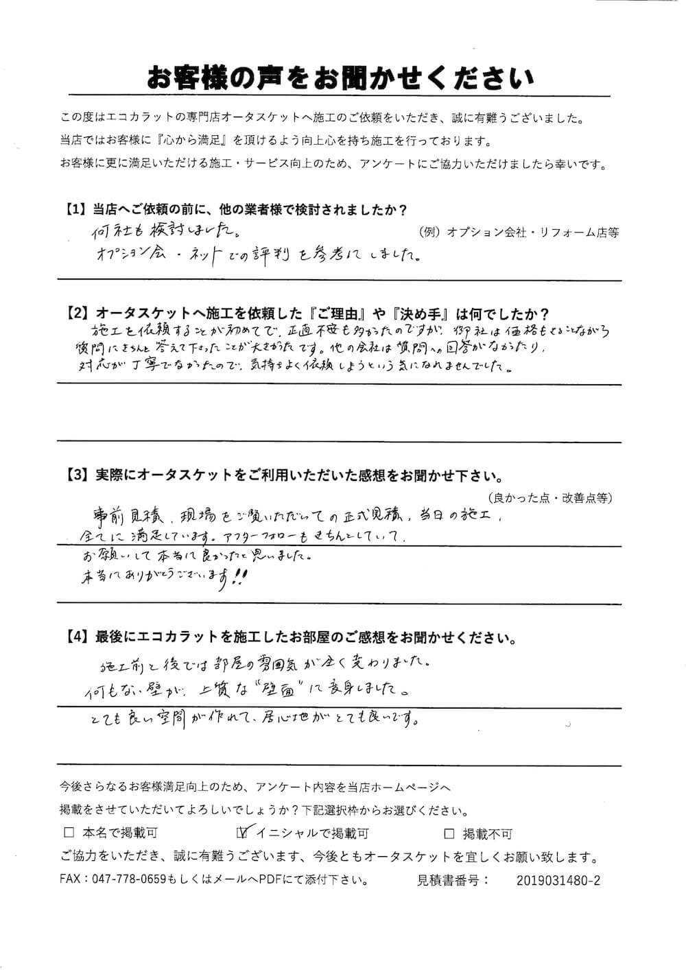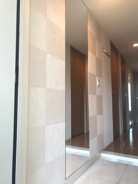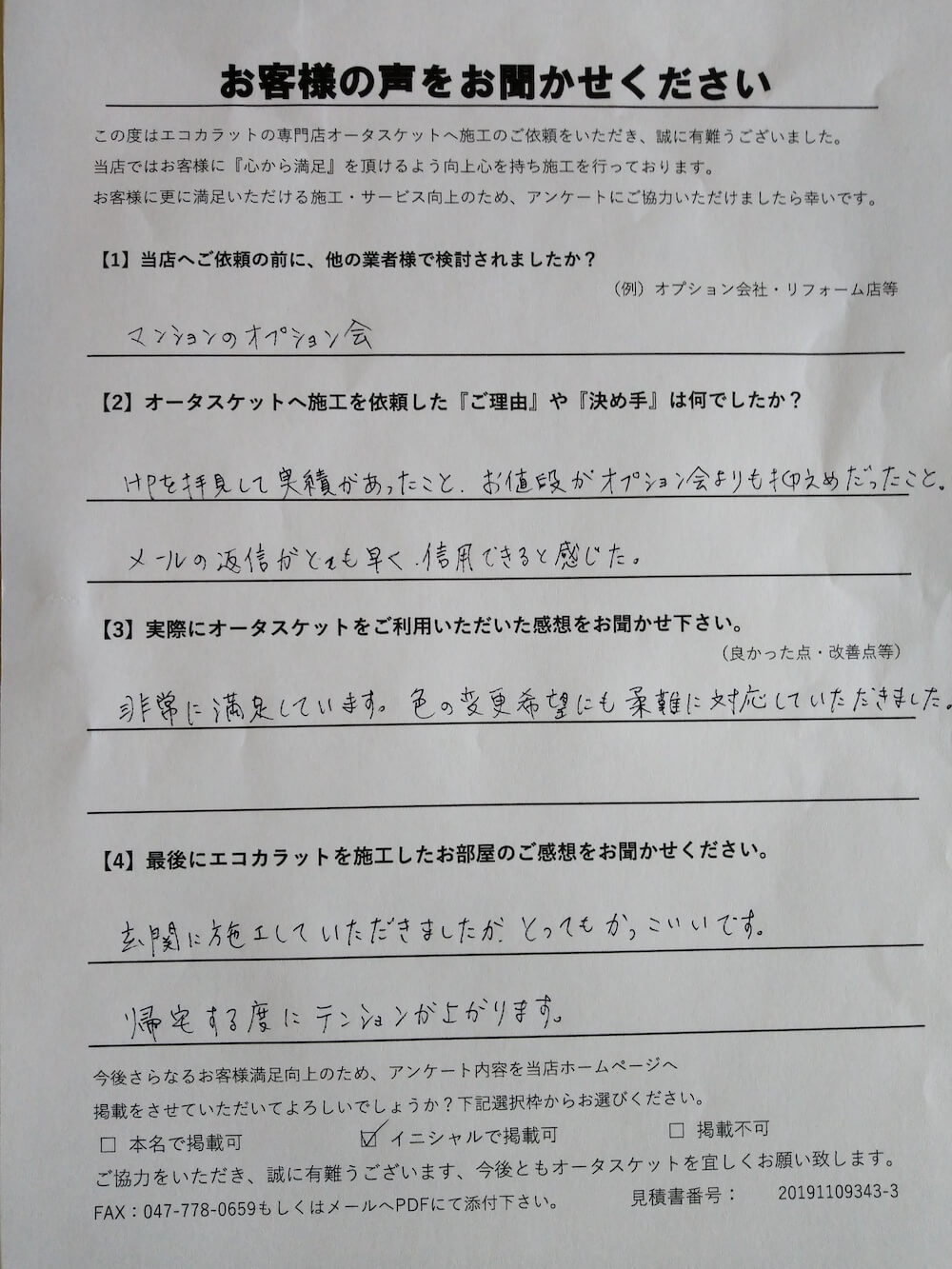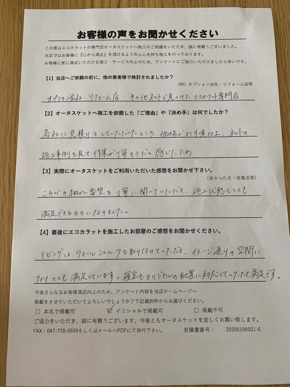エコカラットサンプルをお持ちし、実際の部屋で色合わせします。また、施工箇所の採寸、下地の状態、施工スペースも確認します。
