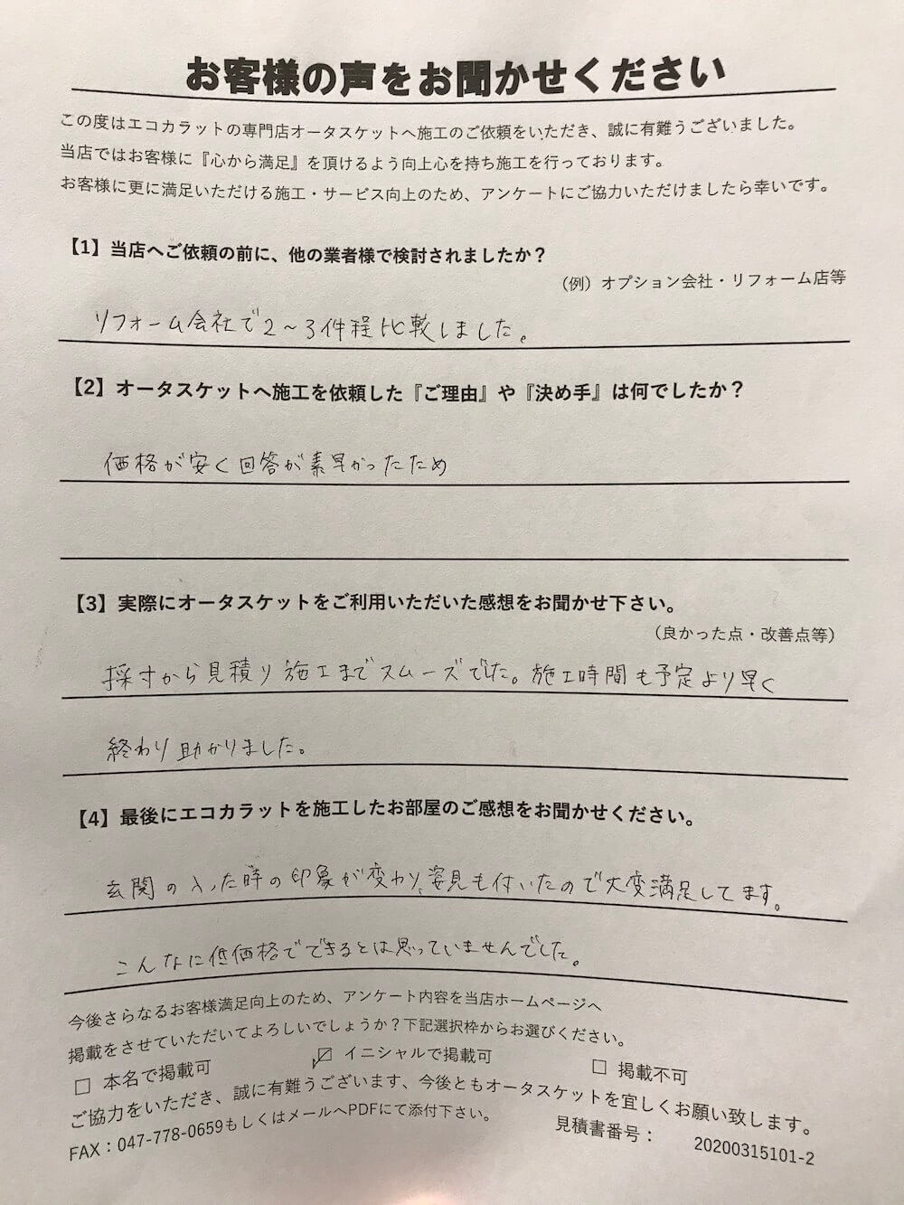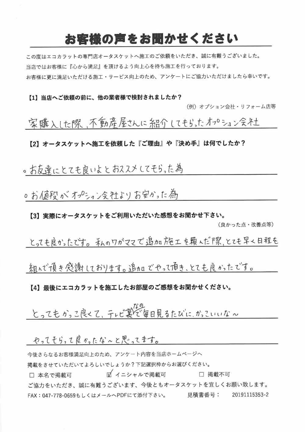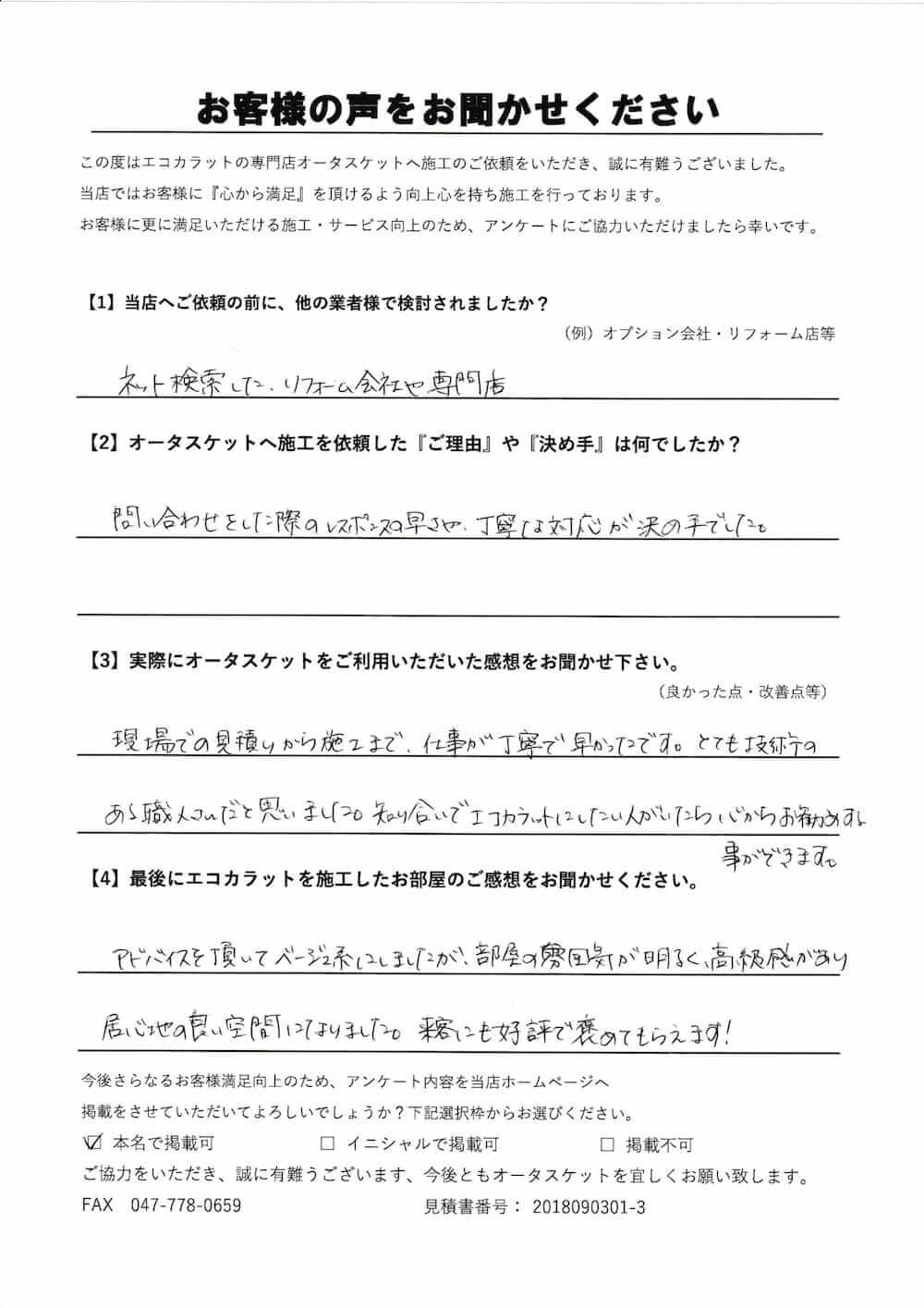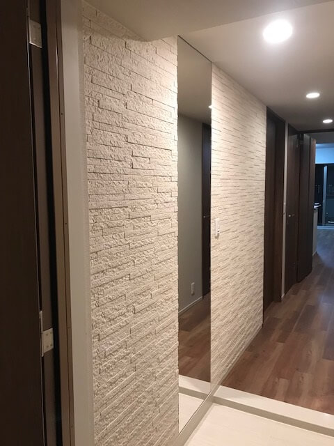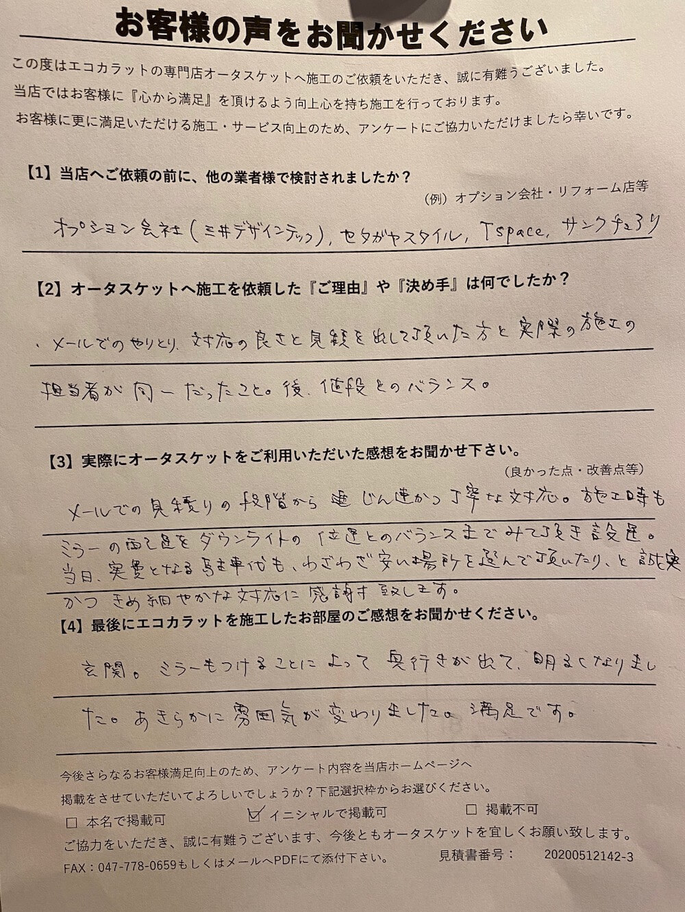 エコカラットサンプルをお持ちし、実際の部屋で色合わせします。また、施工箇所の採寸、下地の状態、施工スペースも確認します。