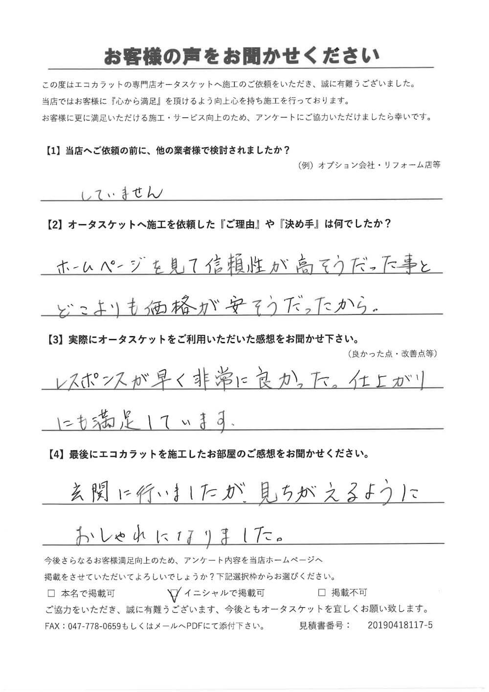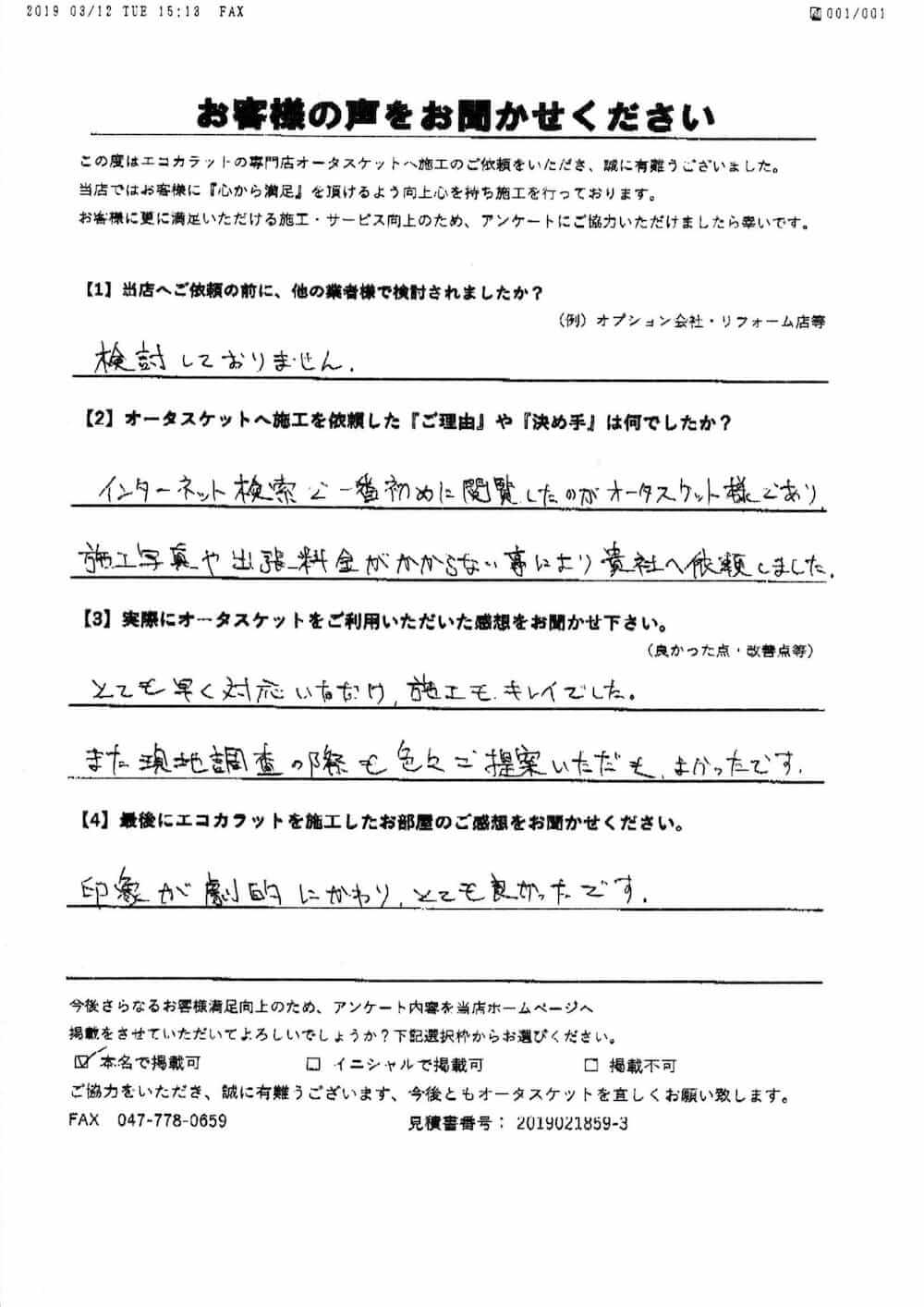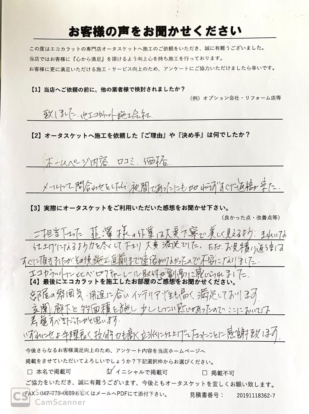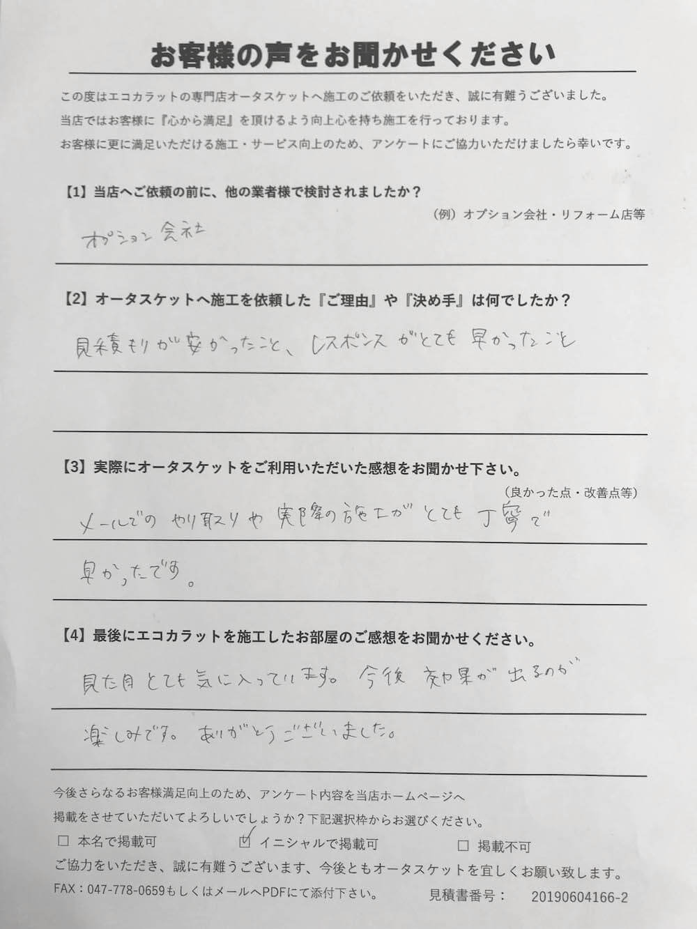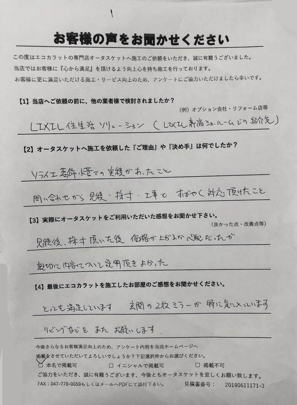 大切にしています。お見積もりに関しては、各社様々です。当店の強みは「ご提案・お見積り→工事→アフターサービス」まで一貫して当店が責任を持ってやり抜く体制です。下請けに仕事を流したり担当者が変わることもありません。お見積もり価格も品質とコストのバランスを第一にして、削減したコストはお客様のお見積もりへ還元しております。更に、悪徳訪問販売業者にありがちな「売ったら終わり」ということではなく、工事が終わってからのお客様とのお付き合いを大切にしています。くれぐれも「ただ安いだけ」「ただ高いだけ」のお見積もりで満足してしまわないようご注意くださいませ。